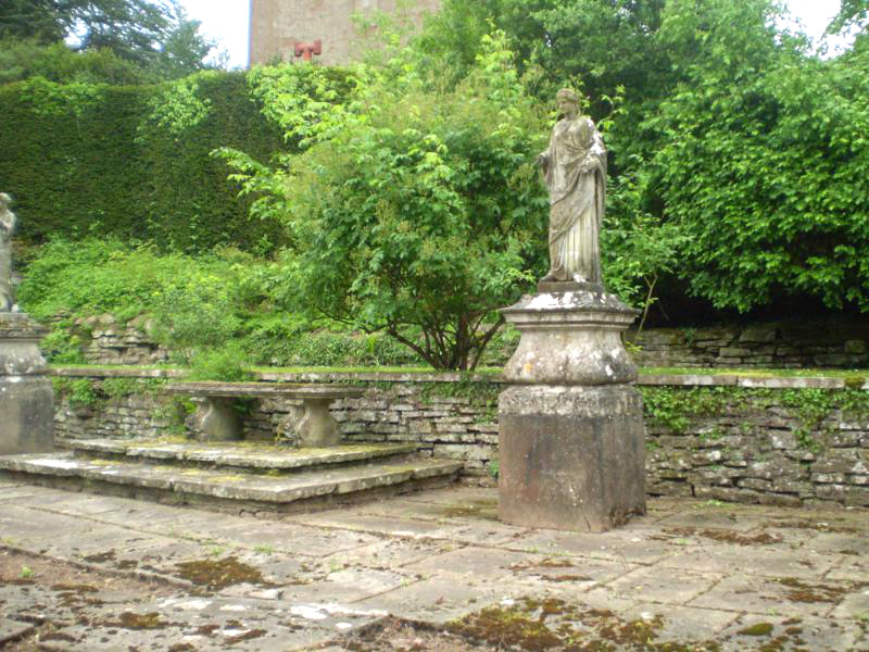 Mountains. Formal terraces with yew hedges, pools, statues and a traditional